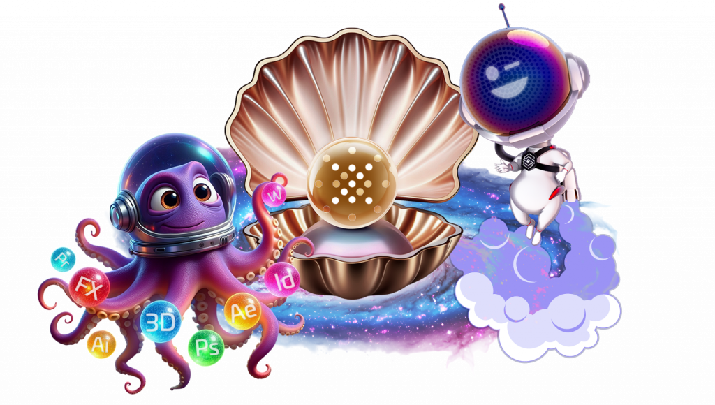 Dans son voyage intergalactique, Cosmo fait la rencontre de 4 créatures cosmiques et leur leader ZION, le poulpe en chef d’orchestre